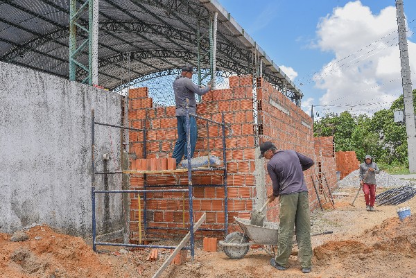 Outra obra estruturante que ocorre no Ancuri é a construção de banheiros e vestiários na quadra poliesportiva da Creche Gervásio. Esse equipamento escolar, cuja utilidade pública transcende o campo educacional, é um ambiente que acolhe diversas atividades sociais desenvolvidas na comunidade. Portanto, essas intervenções resultam em melhorias diretas para os serviços prestados à população naquele ambiente.